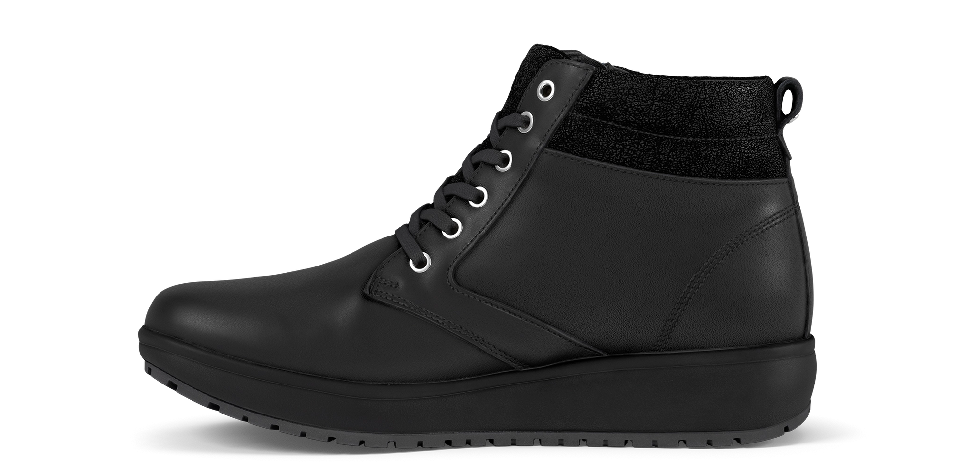 Smart lace up boot with zip for easy entry. Soft full grain leather upper with cushy sparkling suede padded collar. Leather and textile lining. Enhanced with the Joya Senso sole technology with unique cushioning effect, that provides optimum relief for back muscles and joints.