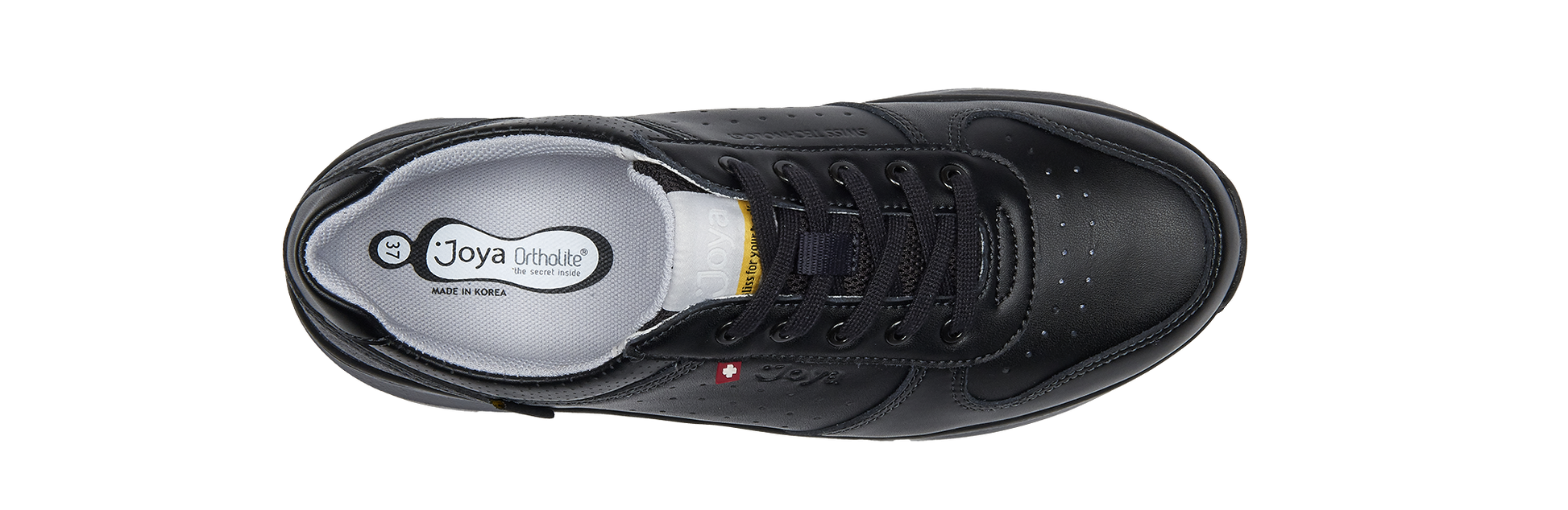 Full grain leather lace up sneakers with slip resistant sole and breathable mesh lining, suitable as work shoe. Implemented with the Joya Active sole technology that guarantees an ideal combination of cushioning, rebound and stability. For people on the move who need comfort in action and performance on every surface.